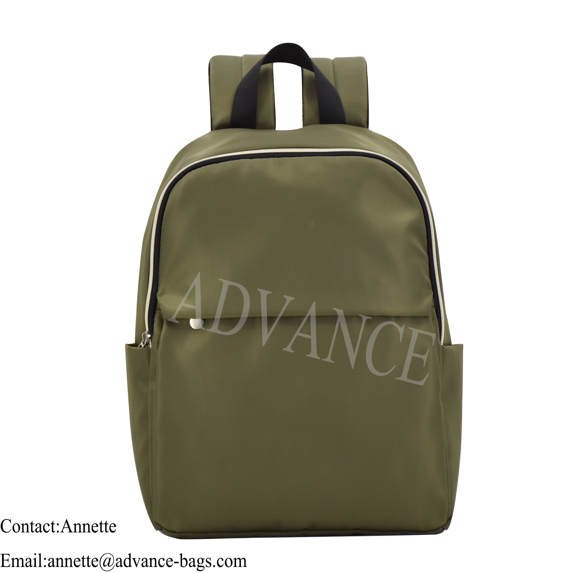 Un bolsillo delantero de la cremallera, dos bolsillos laterales en el material del cuerpo para botella o paraguas.